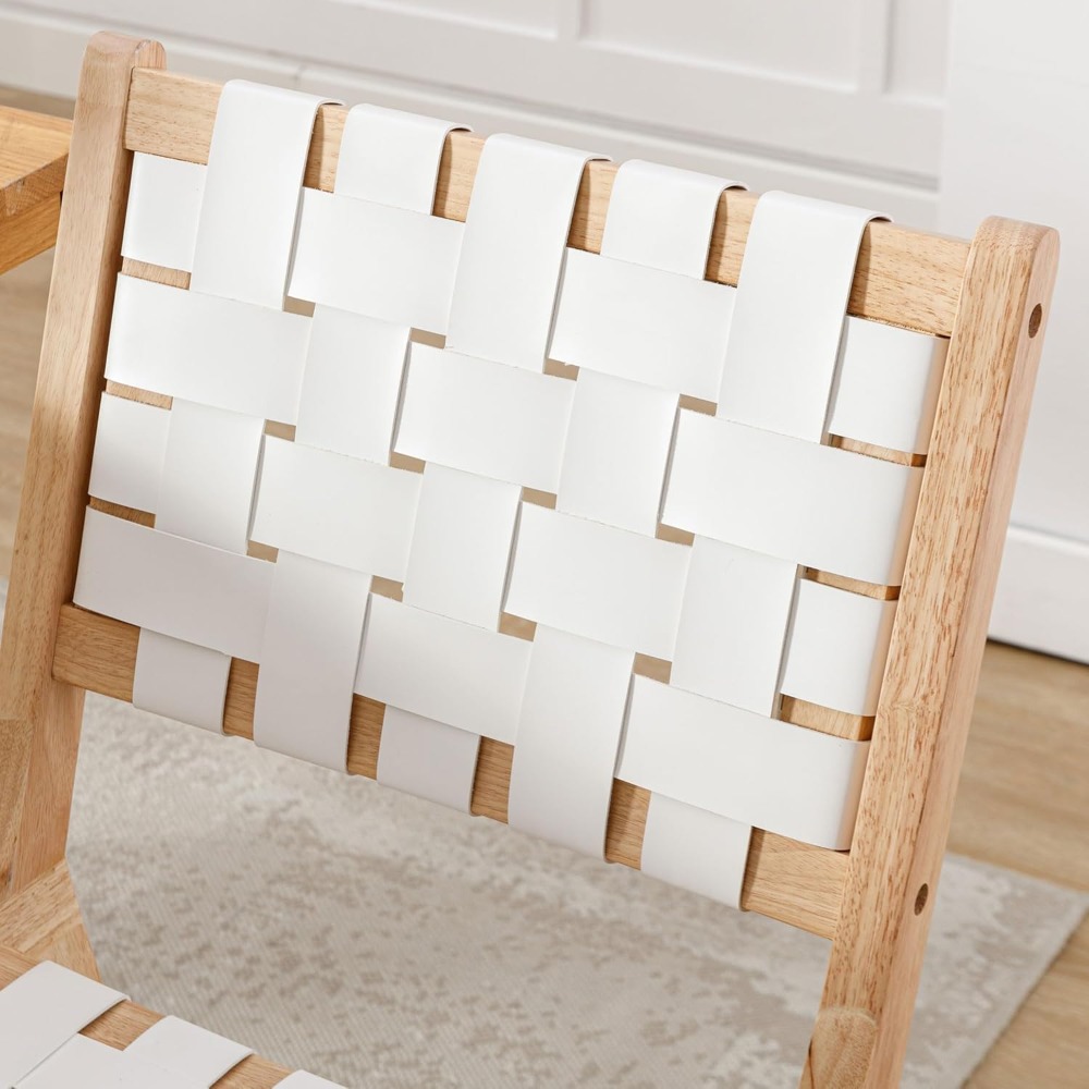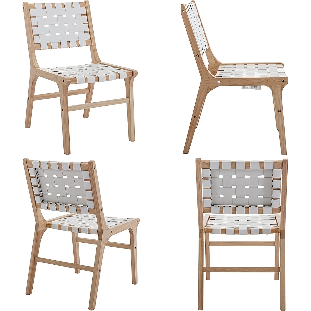Set of 2 Modern White PU Dining Chairs with Woven Backrest & Hardwood Legs - Classic Contemporary Accent Chairs, Easy-Clean Wipeable Surface, Comfortable Seating for Kitchen, Dining Room, Living Room, Bedroom, Restaurant - Durable Synthetic Faux Lea